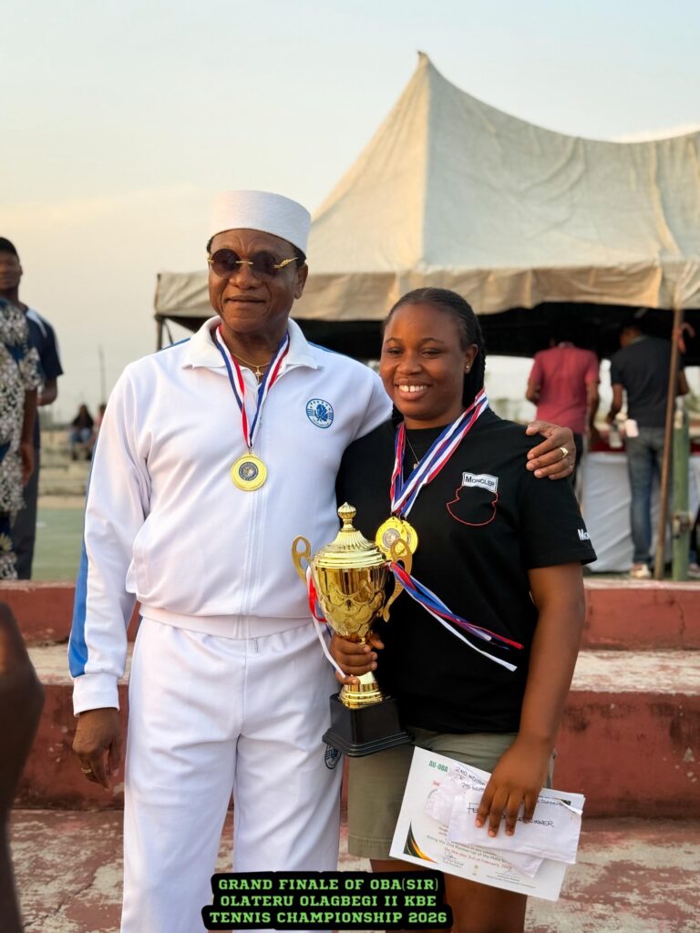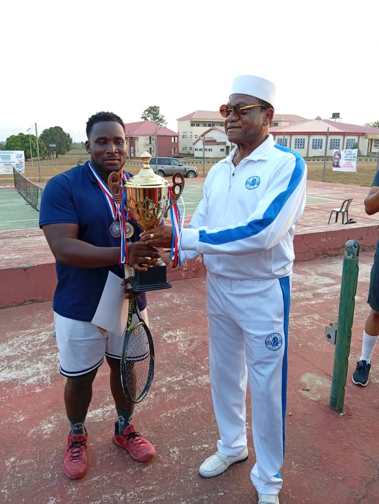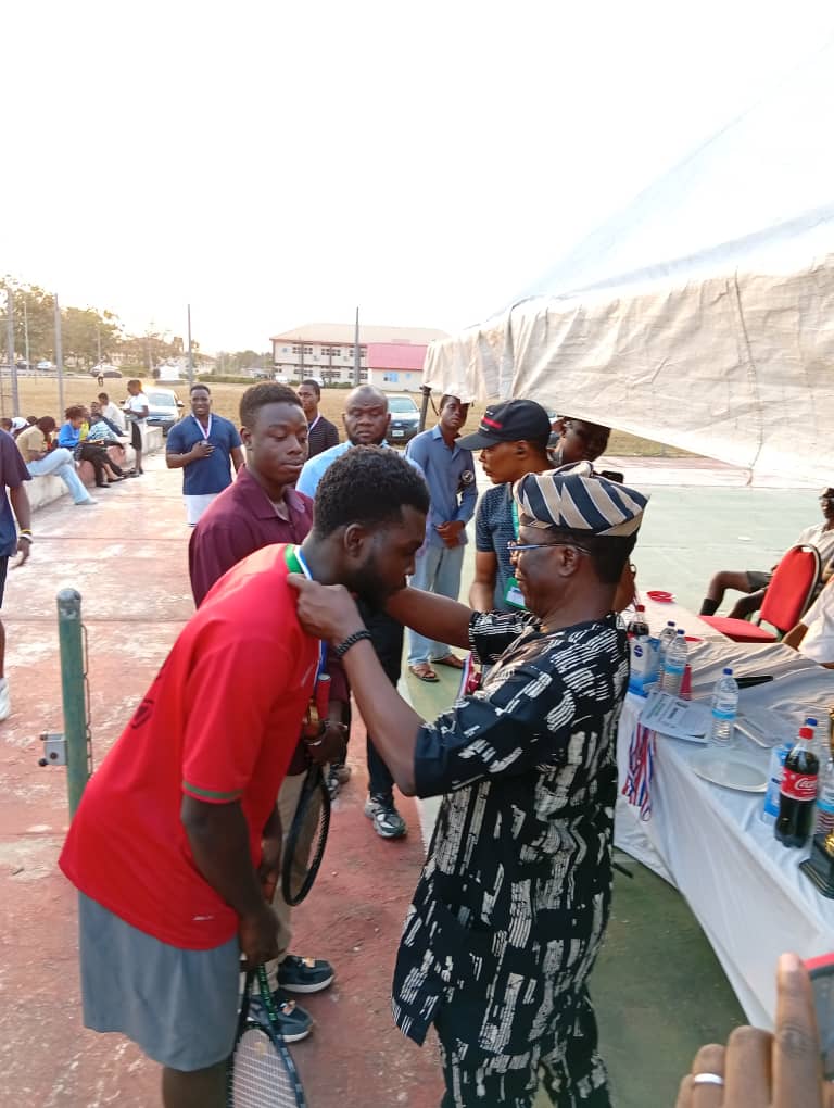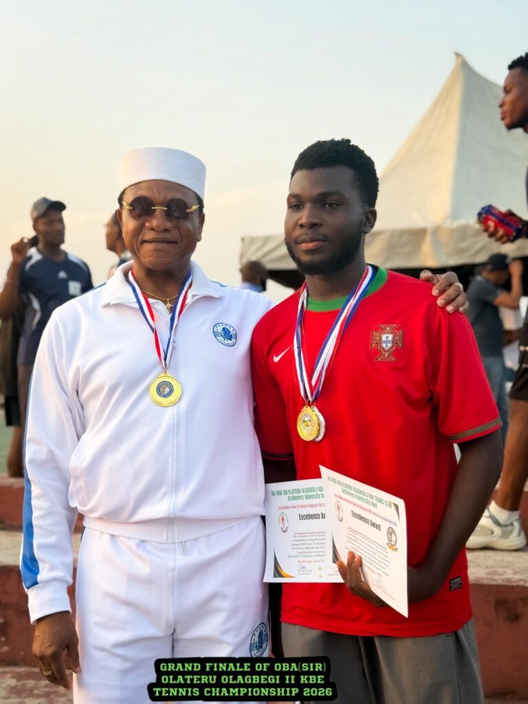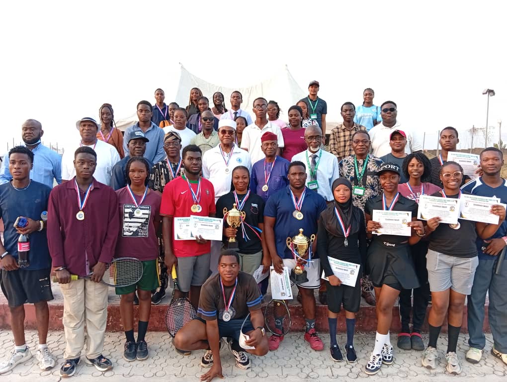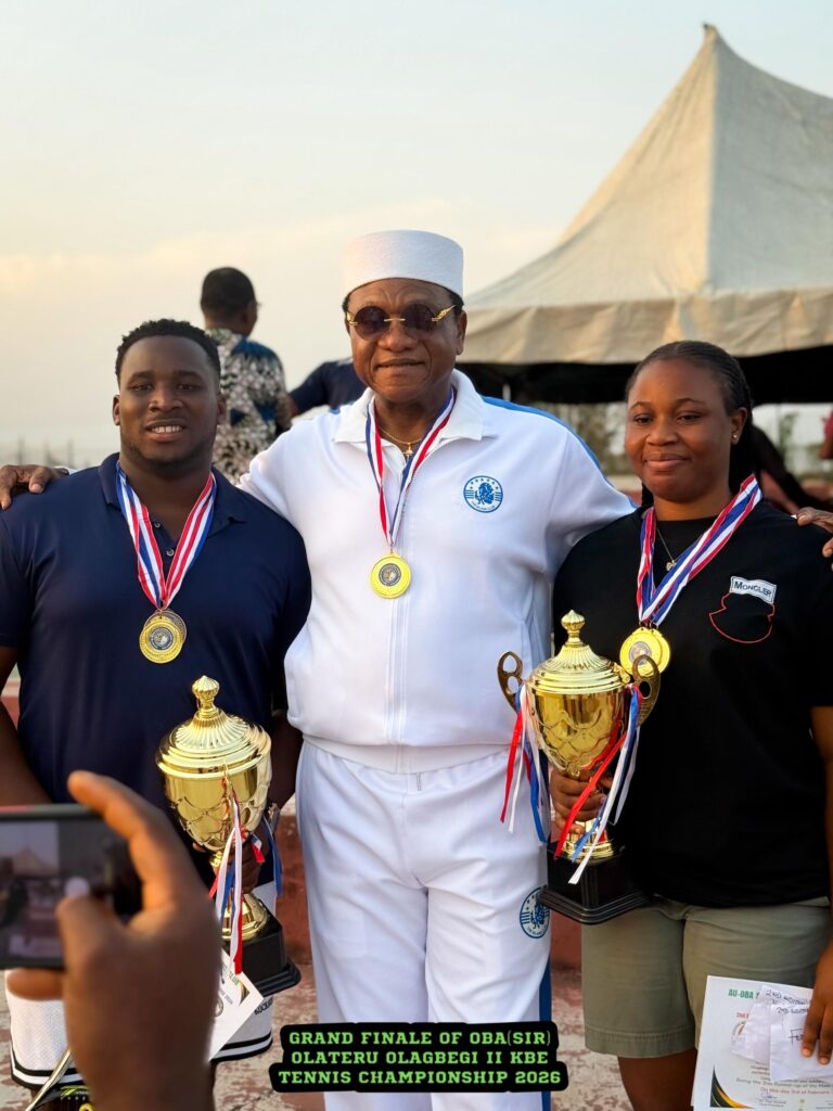 The championship, held at the University’s tennis court, concluded with a keynote charge from the sponsor, retired Honourable Justice (Dr.) Adesuyi Olateru-Olagbegi, who drew on decades of personal experience to frame tennis as a metaphor for success. He told players and students that sustained focus, discipline and resilience — distilled in the simple coaching instruction to “keep your eyes on the ball” — are decisive advantages in academic pursuits and professional life.